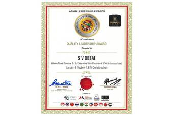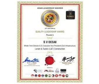 Mr. A M Naik, Group Chairman, has been conferred the Lifetime Achievement Award by the Indian Buildings Congress (IBC). This is in recognition of Mr. Naik’s valuable services and outstanding contribution to the construction industry. Mr. SN Roy, Whole-time Director & Sr EVP, received the Award on behalf of Mr. Naik.