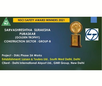 Railways SBG's WDFC CTP 1&2 Project consortium with Sojitz Corporation (Japan) received the highest-level safety accolade, ‘Sarvashreshtha Suraksha Puraskar’ (Golden Trophy), from the National Safety Council of India (NSCI) under construction sector category.