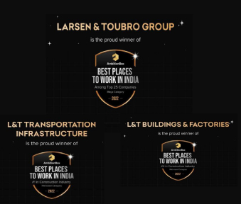 L&T was recognised as one of India’s Best Employers among Nation-Builders 2023 by Great Place to Work (GPTW). Additionally, L&T received two more Great Place to Work recognitions