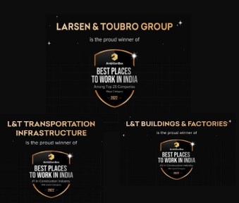 L&T Group has been ranked among India’s 25 Best Mega Companies for 2022 by AmbitionBox Best Places to Work based on a study of employees’ reviews and ratings from 7 lakh+ companies, recognizing L&T as the country’s largest employer choice award.