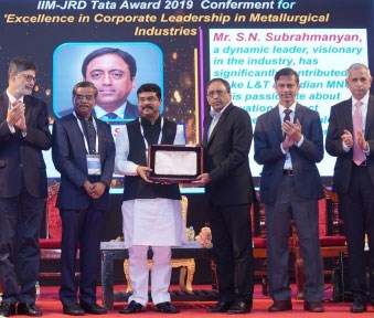 Mr. S.N. Subrahmanyan, CEO & Managing Director was awarded the prestigious IIM-JRD Tata Award for ‘Excellence in Corporate Leadership in Metallurgical Industries’ for 2019 at the 57th National Metallurgist’s Day Awards Function held on November 14, 2019.
