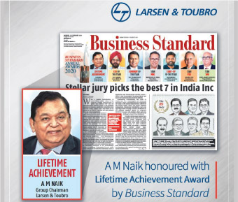 L&T’s Group Chairman, Mr. A. M. Naik, was honoured with the prestigious Lifetime Achievement Award by Business Standard. The distinguished jury for the ‘Business Standard Annual Awards 2020’ was unanimous in its choice of AMN as winner of the award, after considering several outstanding individuals who have left a deep and lasting impact on India’s corporate history. The jury recognised AMN as a trailblazer, not only in the world of business but also in the sphere of philanthropy.